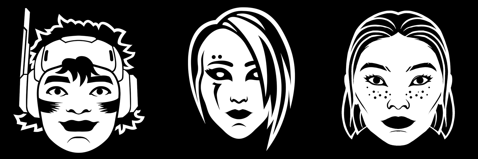 With new characters come new abilities; the creative challenge is to understand and play the game with the new characters as they evolve during design phases. Abilities require a series of icons to represent their in-game effect, in abstracted and modern white and grey shapes. Characters also receive graphic art face icons, to be readily identifiable at a glance.