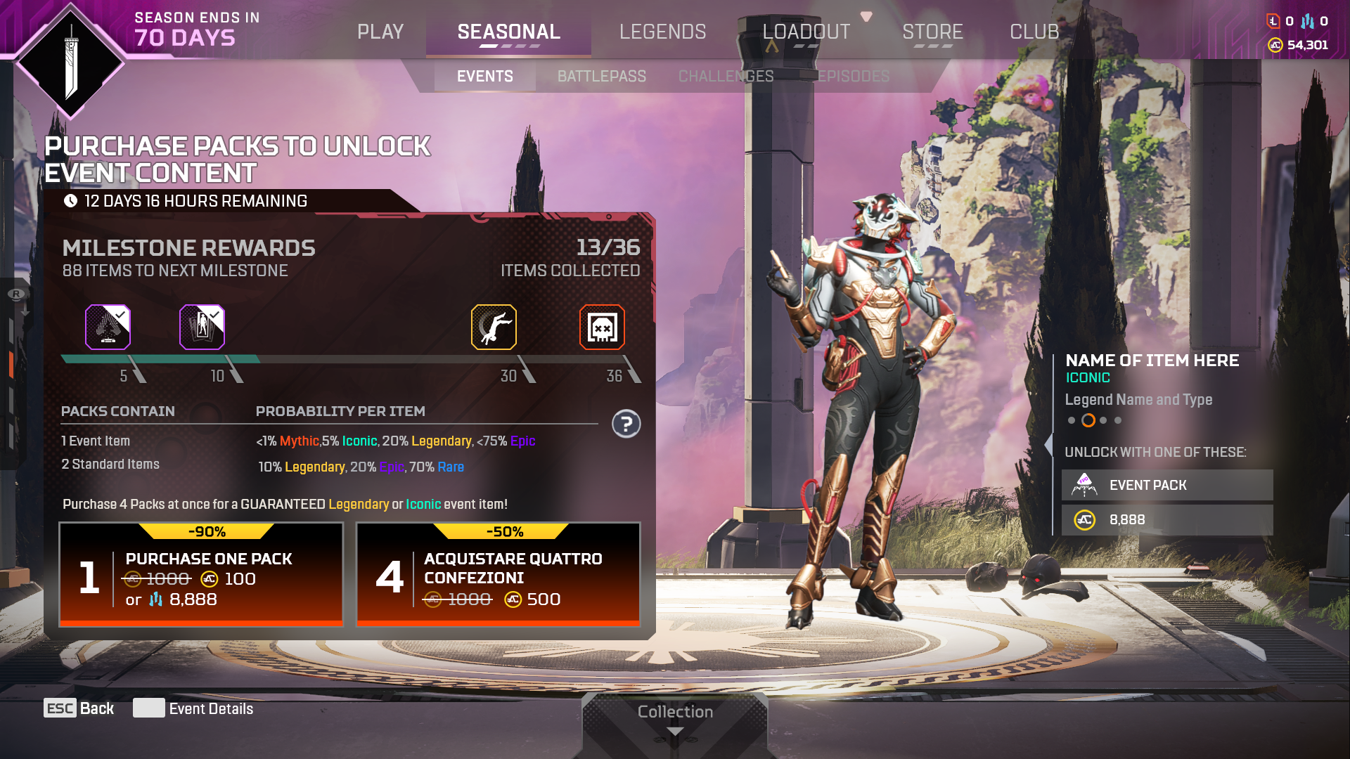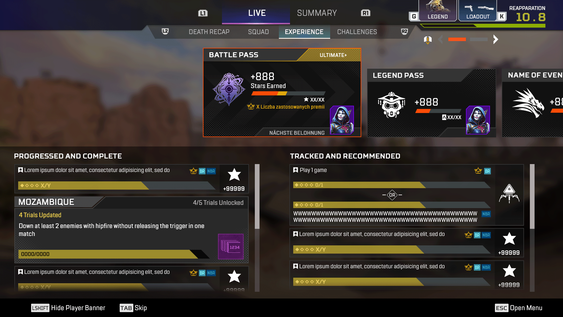 Screen layouts and mockups balance an information- and data-heavy communication with aesthetics and moving pieces. Apex Legends has a lot to tell the user, and the UI art challenge is to accommodate that by using consistent colors, spacing, animation, and design language across a multitude of interactions.
